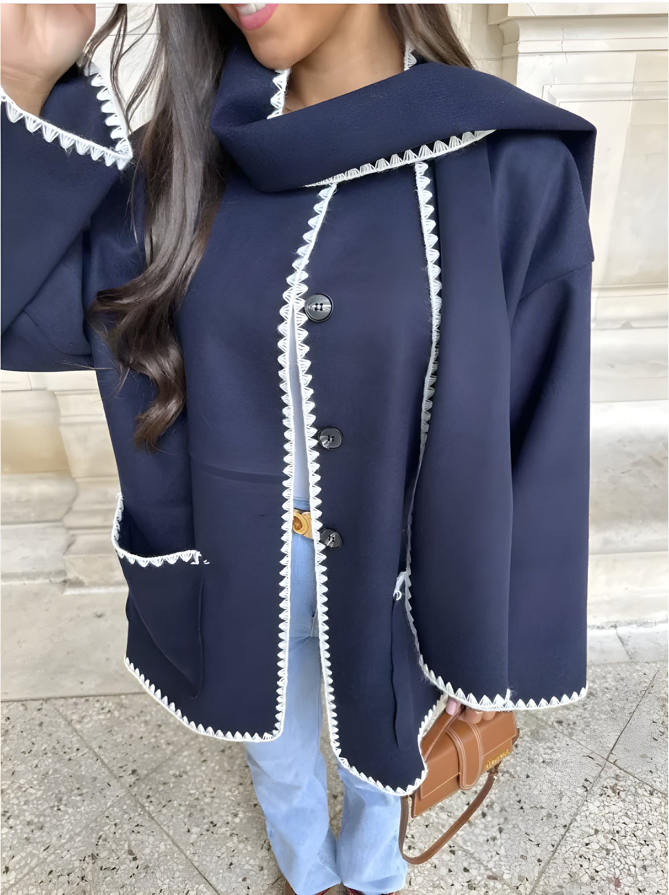 Sophia Stylish Women's Coat with Scarf – Elegantie en Warmte in Eén